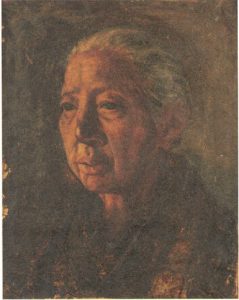 当時16歳頃の少年には、キャンバスや油絵の具は用意できるはずもありませんが、それでも描きたかった虎次郎は、木枠に木綿を張ってキャンバスとし、ペンキで描いたのでした。模写とはいっても、本格的な美術教育を受けていなかったにもかかわらず、老婦人の深い慈しみあふれる表情がとらえられており、少年虎次郎の画才をしのばせる貴重な資料の一つとなっています。