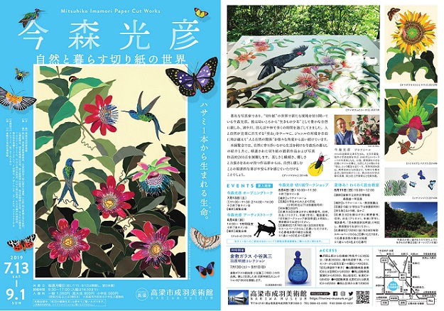 本展覧会では、自然に寄り添いながら生活を続ける今森氏の暮らしの紹介と共に、精選された切り紙の最新作品および写真作品約200点を展観します。美しさと繊細さ、優しさと力強さをあわせ持つ作品群からは、自然と親しむことの根源的な喜びや安らぎを感じていただけることでしょう。