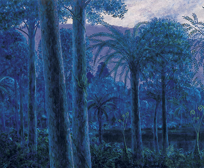 ベネチテス類には大きく2つのグループがあり、枝分かれする細長い幹を持つ、高さが2mほどになるウィリアムソニ科と、太くてごろんとした丸い幹を持つ、高さ1mに満たないキカデオイデア科があります。成羽から見つかるのは、背の高いほうの、ウィリアムソニ科のなかまです。カンピロフィラム属、オトザミテス属、プテロフィラム属の3属14種の葉化石が今までに発見されています。特にオトザミテスとプテロフィラム属が多く見つかっています。
