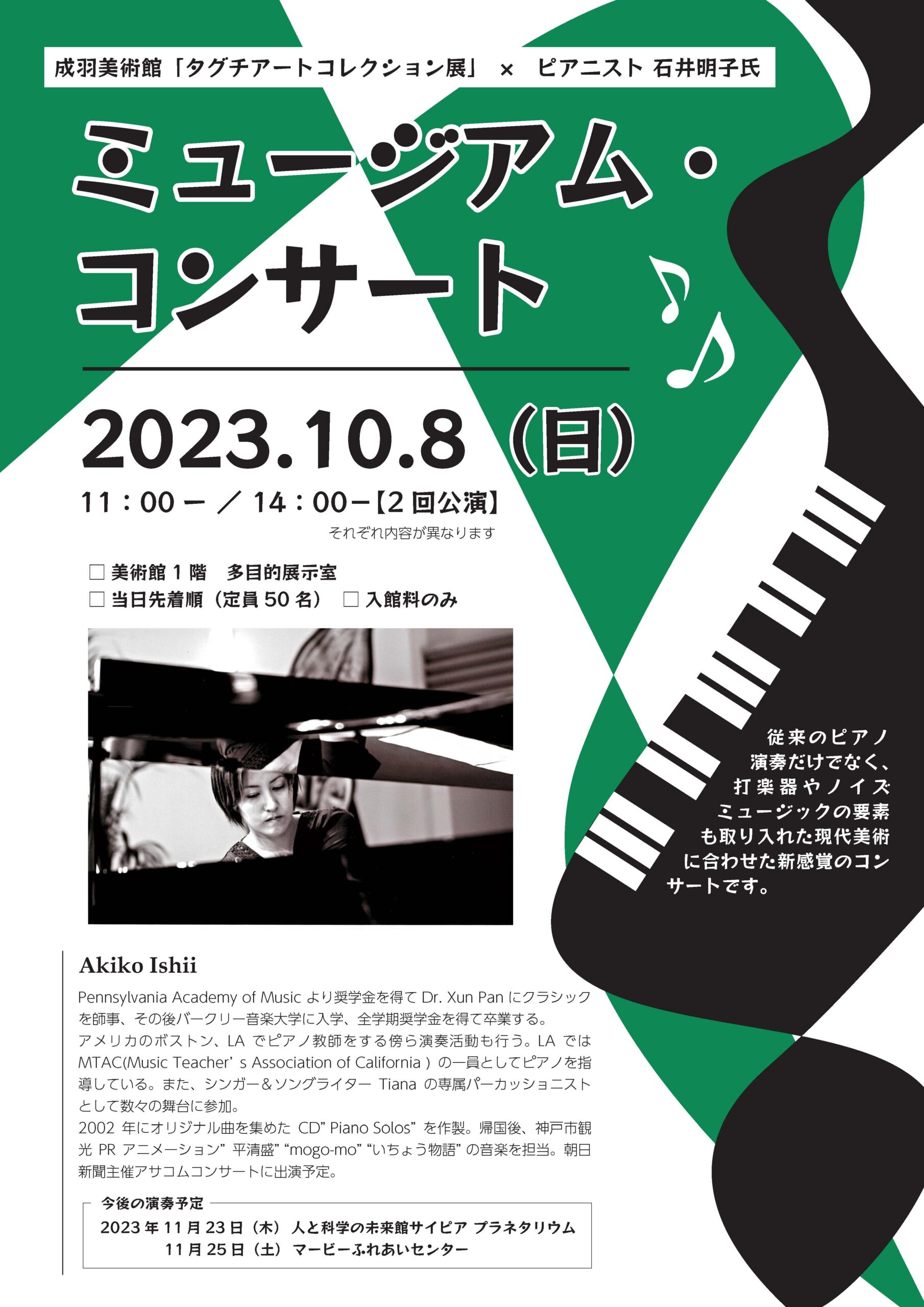 ピアニスト・石井明子氏によるミュージアム・コンサートを開催します。