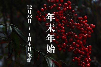 Home お知らせ 年末年始のお知らせ 年末年始のお知らせ 2023.12.19 お知らせ 成羽美術館は12月28日(木)から1月4日(木)まで休館いたします。新年は1月5日(金)午前9時30分より開館します。 皆様のお越しをお待ちしております。 コメントは利用できません。