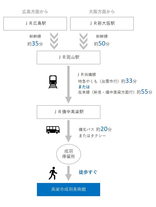 ※「成羽」停留所は美術館隣のたいこまるプラザ前にございます。 ※運賃は片道440円です。