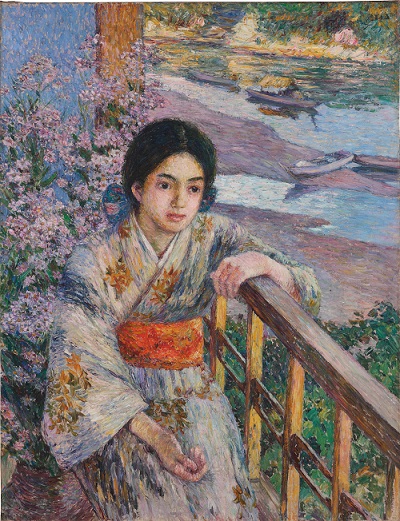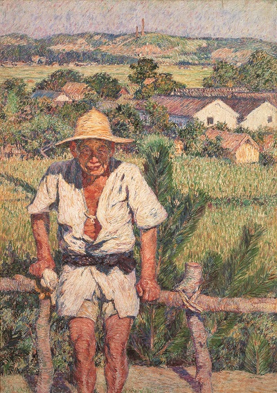 児島虎次郎(1881〜1929)は、色彩鮮やかな人物画や風景画で知られる、日本における印象派の代表的な画家です。またモネやエル・グレコなど大原美術館の礎となる西洋美術の収集にも尽力しました。47年という短い生涯の中でヨーロッパに3回、中国・朝鮮半島には4回赴き絵画修業と収集活動を展開しましたが、そこには敬虔な文化交流者としての姿もありました。児島は、旅館・仕出し業「橋本屋」の次男として川上郡下原村(現高梁市成羽町)に生まれました。幼少より画才をあらわし、1901(明治34)年には画家を志して上京、「不同舎」に入塾し画技の手ほどきをうけます。1902(明治 35)年、東京美術学校西洋画科選科に入学し黒田清輝、藤島武二らに師事。成績優秀のため2年飛び級して1904(明治37)年に卒業した後、研究科に進みます。1907(明治40)年には恩師 黒田清輝の勧めで東京府主催 勧業博覧会美術展に《なさけの庭》を出品、1等賞受賞の上、宮内省お買い上げの栄誉を得て、画壇に華々しいデビューを飾りました。翌年大原家の援助により渡欧した児島はベルギーのゲント美術アカデミー留学時代にジャン・デルヴァンやエミール・クラウスらから当地に波及していた印象派の技法や対象の捉え方を学びます。帰国後の1913(大正2)年、社会事業家 石井十次の娘 友と結婚。倉敷の酒津に居を構えます。当時の児島はヨーロッパで学んだ技法や色彩感覚を生かすべく日本の風土との融和を目指し苦悩する時期もありましたが、東洋人としての油彩画を探求するため中国・朝鮮半島へも出掛け見聞を広めるとともに制作にも励みました。